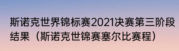 斯诺克世界锦标赛2021决赛第三阶段结果(斯诺克世锦赛塞尔比赛程)