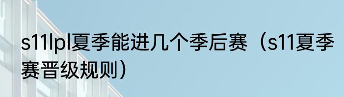 s11lpl夏季能进几个季后赛(s11夏季赛晋级规则)