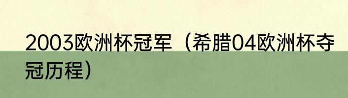 2003欧洲杯冠军(希腊04欧洲杯夺冠历程)