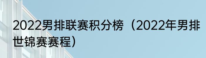 2022男排联赛积分榜(2022年男排世锦赛赛程)