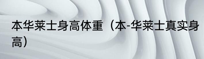 本·华莱士(BenWallace),1974年9月10日出生于美国亚拉巴马州怀特霍尔(WhiteHall,AL),前美国职业篮球运动员,司职中锋,绰号“大本”(BigBen),现任NBA底特律活塞队运营顾问。