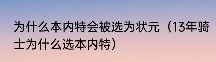 为什么本内特会被选为状元(13年骑士为什么选本内特)