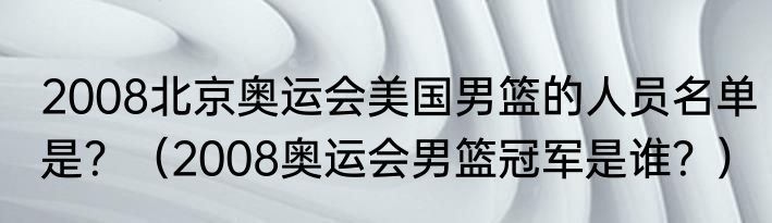 提及2008北京奥运会美国男篮的人员名单是?(2008奥运会男篮冠军是谁?)的相关内容,许多人不太了解,来看看小鹤的介绍吧!