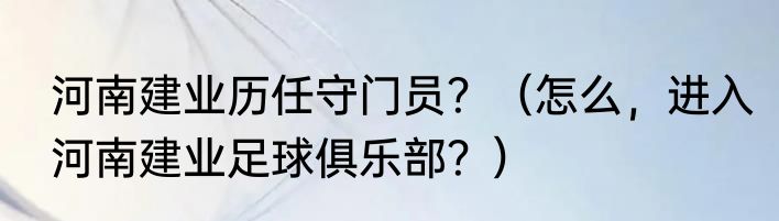 提及河南建业历任守门员?(怎么,进入河南建业足球俱乐部?)的相关内容,许多人不太了解,来看看小福的介绍吧!
