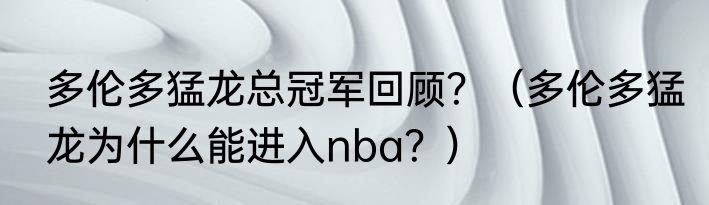 简介提及多伦多猛龙总冠军回顾?(多伦多猛龙为什么能进入nba?)的相关内容,许多人不太了解,来看看小彦的介绍吧! 多伦多猛龙总冠军回顾?一