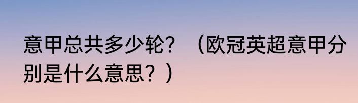 意甲总共多少轮?(欧冠英超意甲分别是什么意思?)
