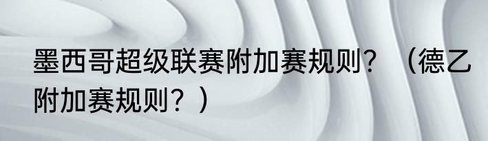 提及墨西哥超级联赛附加赛规则?(德乙附加赛规则?)的相关内容,许多人不太了解,来看看小祯的介绍吧!