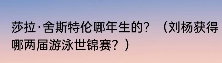 简介提及莎拉·舍斯特伦哪年生的?(刘杨获得哪两届游泳世锦赛?)的相关内容,许多人不太了解,来看看小晴的介绍吧! 莎拉·舍斯特伦哪年生的