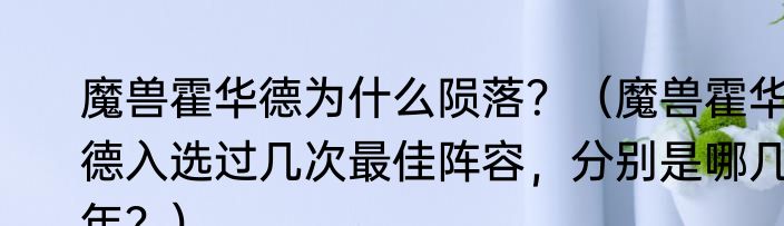 魔兽霍华德为什么陨落?(魔兽霍华德入选过几次最佳阵容,分别是哪几年?)