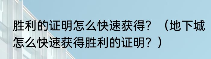 胜利的证明怎么快速获得?(地下城怎么快速获得胜利的证明?)
