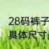 28码裤子对应尺码 裤子28码对应的具体尺寸是多少