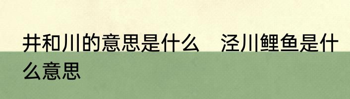 井和川的意思是什么 泾川鲤鱼是什么意思
