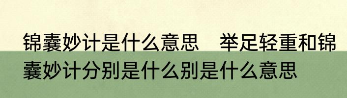 锦囊妙计是什么意思 举足轻重和锦囊妙计分别是什么别是什么意思