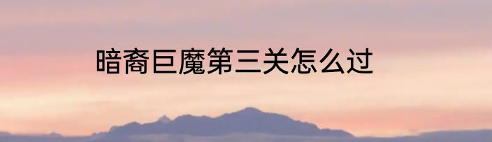 暗裔巨魔第三关怎么过?