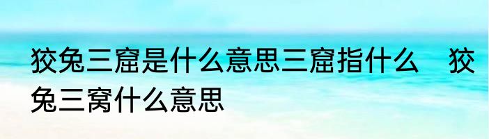 狡兔三窟是什么意思三窟指什么 狡兔三窝什么意思