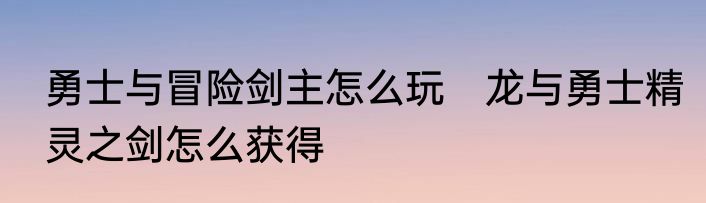勇士与冒险剑主怎么玩 龙与勇士精灵之剑怎么获得
