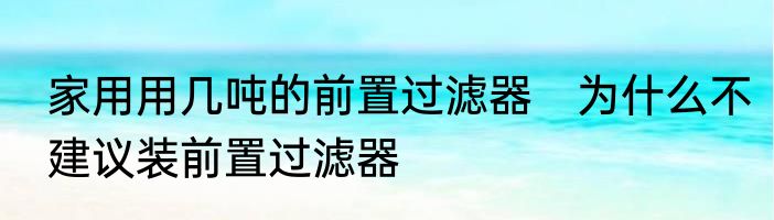 家用用几吨的前置过滤器 为什么不建议装前置过滤器