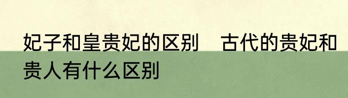 妃子和皇贵妃的区别 古代的贵妃和贵人有什么区别