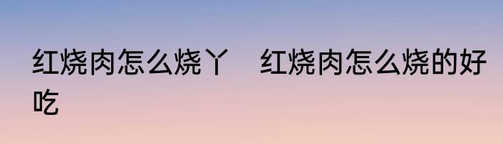红烧肉怎么烧丫?