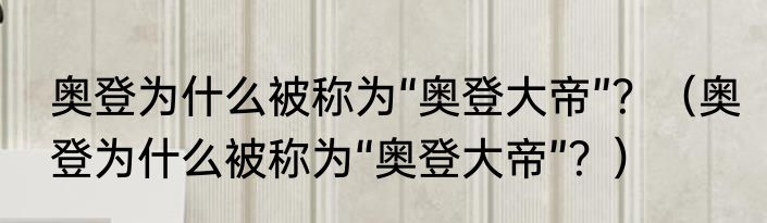 提及奥登为什么被称为“奥登大帝”?(奥登为什么被称为“奥登大帝”?)的相关内容,许多人不太了解,来看看小品的介绍吧!