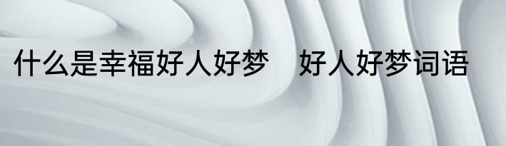 什么是幸福好人好梦?