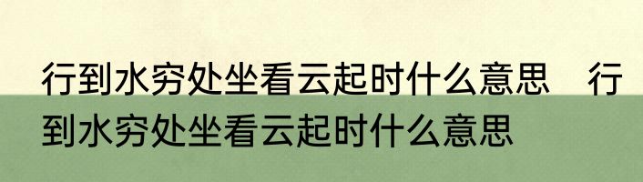 行到水穷处坐看云起时什么意思 行到水穷处坐看云起时什么意思