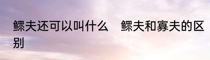 鳏夫还可以叫什么 鳏夫和寡夫的区别