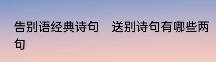 告别语经典诗句 送别诗句有哪些两句