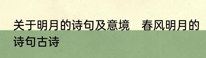 简介关于明月的诗句及意境?《静夜思》【唐】李白床前明月光,疑是地上霜。举头望明月,低头思故乡。此诗描写了秋日夜晚,诗人于屋内抬头望月的