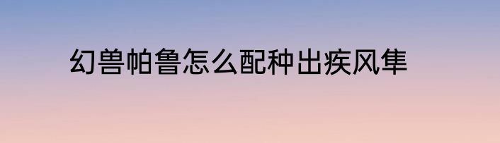 大家好,小绵来为大家讲解下幻兽帕鲁怎么配种出疾风隼,现在让我们一起来看看吧!