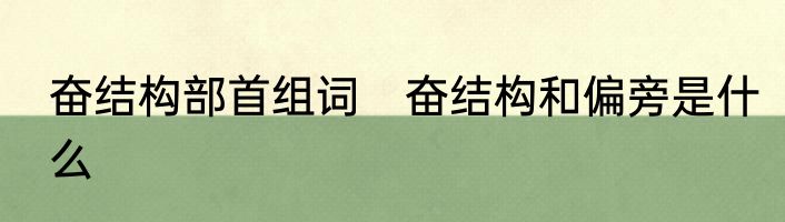 简介奋结构部首组词?结构上下结构,部首:大。兴奋、奋力、奋发、奋斗、振奋、奋袂、奋勇、奋争、感奋、奋激、发奋、奋战、勤奋、奋起、奋勉、