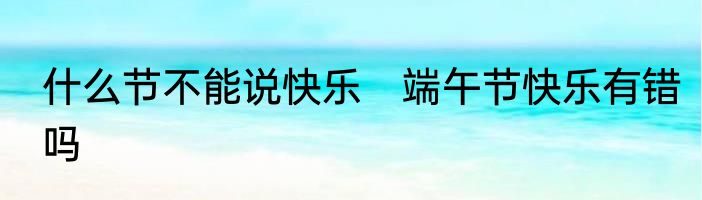 什么节不能说快乐 端午节快乐有错吗